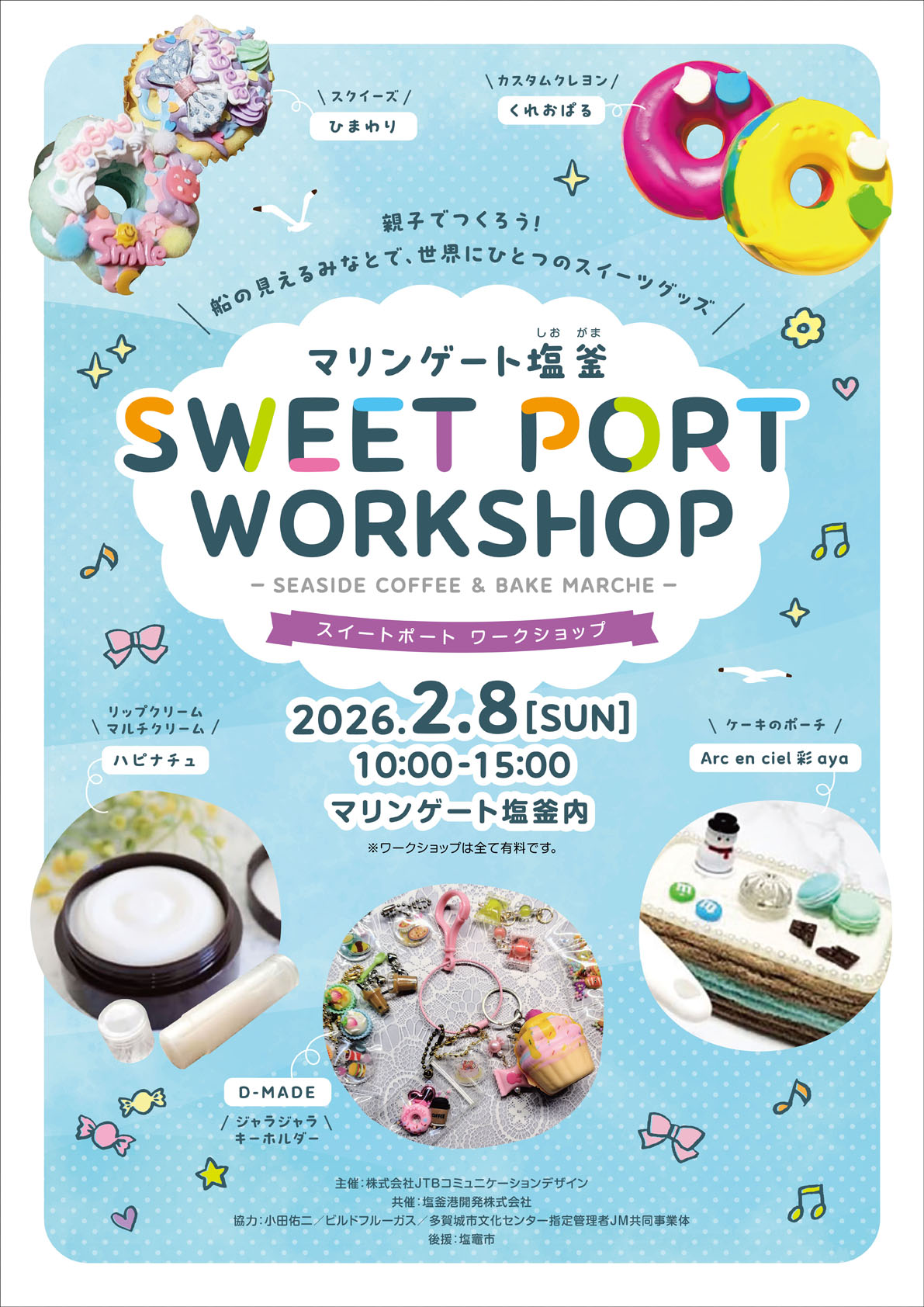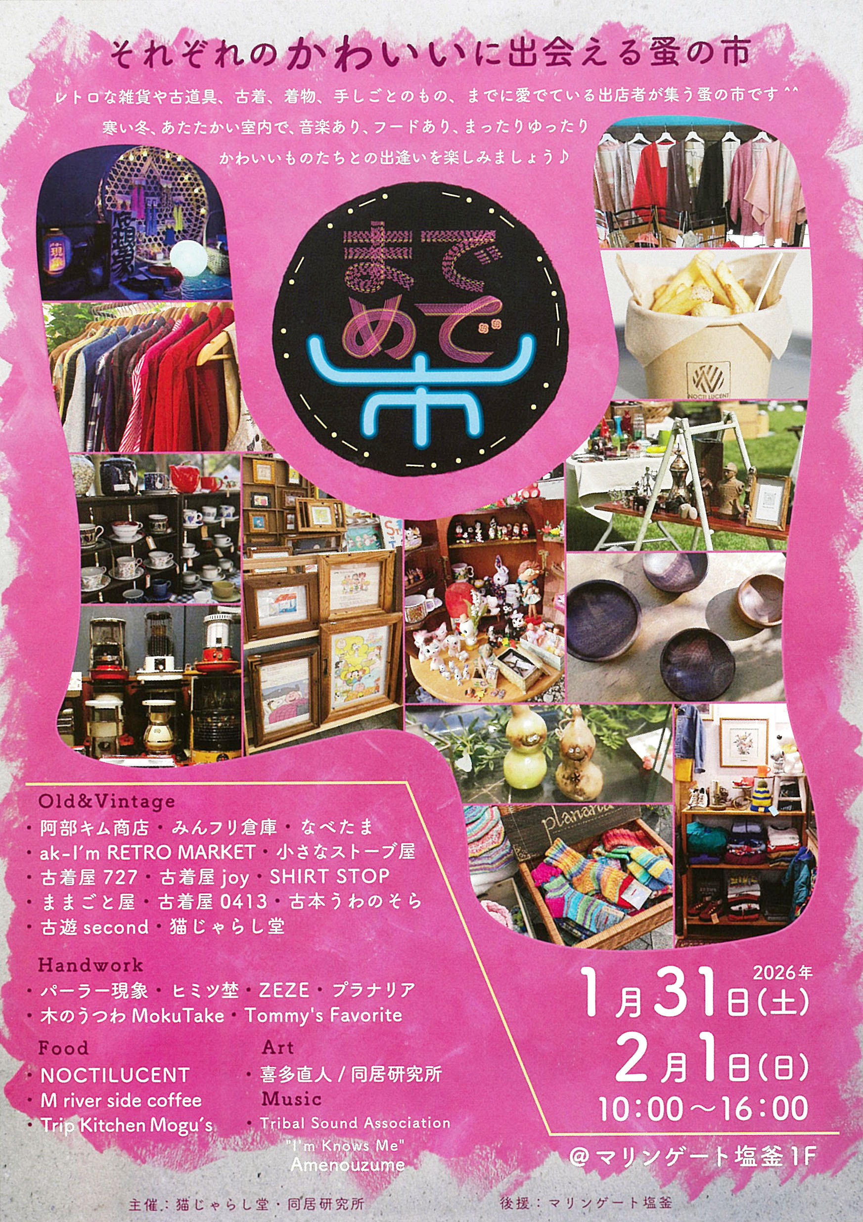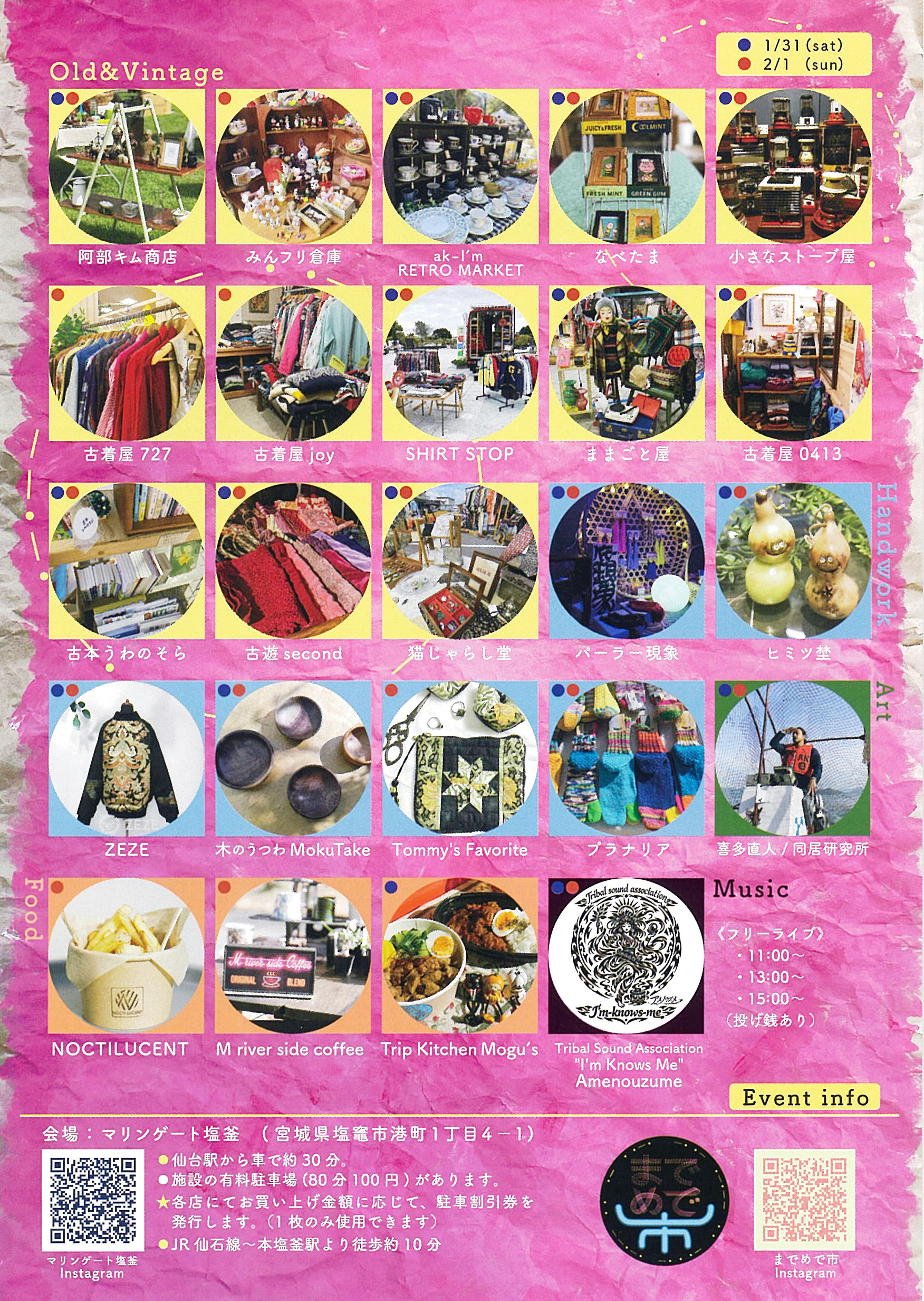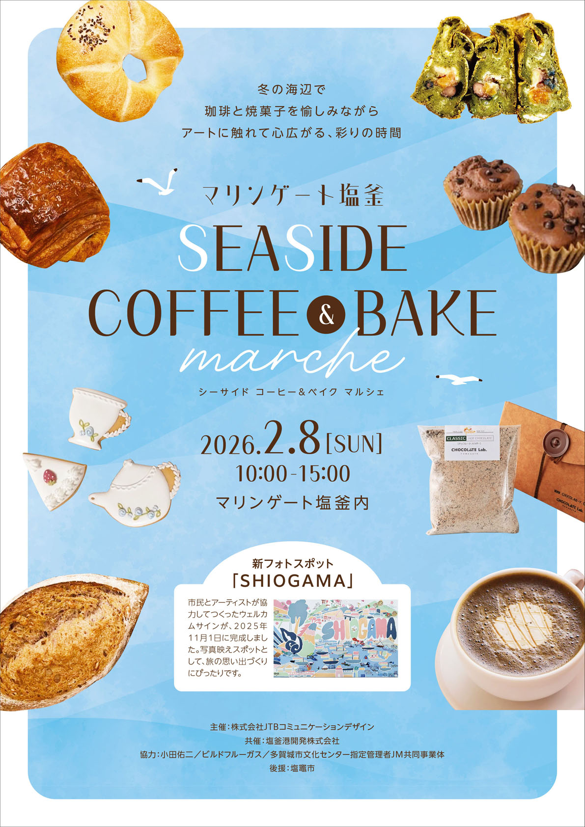 ![]() ![]() 2026年 1月31日(土)・ 2月 1日(日) までめで市 ![]() ![]() ![]() 2026年 2月 8日(日) SEASIDE COFFEE & BAKE MARCHE SWEET PORT WORKSHOP 2026年 2月21日(土)・22日(日) 第42回 塩竈の醍醐味 |